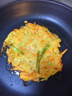 半煎半炸,把土豆饼煎到两面金黄,出锅即可