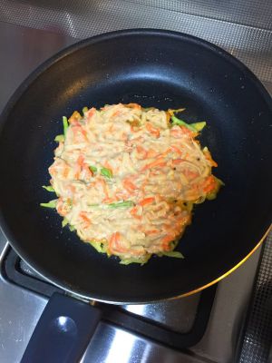 平底锅放少量油,洋葱圈沾少量干粉入锅。然后放入拌好的土豆泥。两年稍煎一会抹上蛋液。(也有把蛋液拌入土豆泥的,个人感觉那样土豆泥会太稀不易成型)