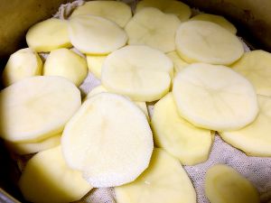 把土豆去皮,切成小块或土豆片放入锅中整10_15分钟