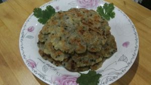 平底锅倒入少量油,把土豆饼放入锅中小火慢煎,变焦黄即可。