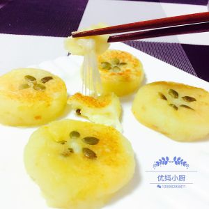 可以点缀南瓜仁并放入电饼档中,两面煎至金黄色。