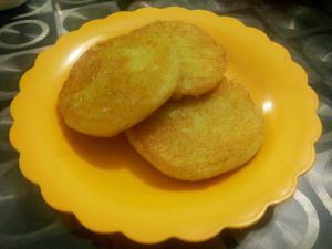 不粘锅加入黄油20g,土豆泥做成30g左右的小圆饼,下锅煎至两面金黄