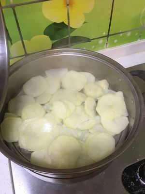 土豆削皮切薄片蒸10分钟左右 筷子一戳就烂就可以了