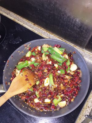 我喜欢放芝麻 和各种辣椒 很辣 很喜欢 不要炒糊了