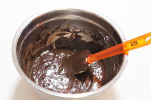 用橡皮刀轻轻翻拌匀均。另外,这个时候要将烤箱开始预热。上下火180度预热。