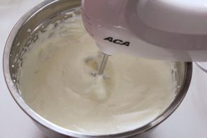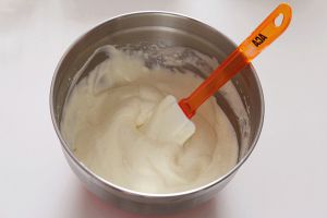 奶油打发软性发泡与马斯卡彭奶酪搅拌均匀