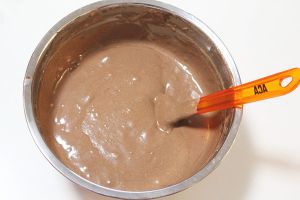 搅拌好面糊,倒入蛋白盆中,搅拌均匀。