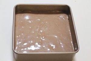 将蛋糕糊倒入八寸的方型蛋糕模中,放入预热好的烤箱,上下火160度烤60分钟。