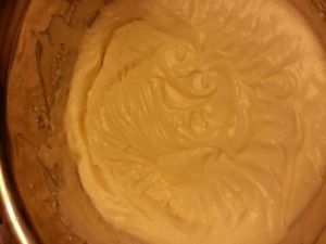马斯卡彭奶酪打发顺滑后与蛋黄糊混合