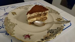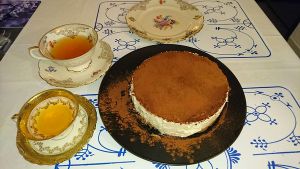 泡一杯咖啡,剩下的奶油代替奶做成泡沫咖啡,提拉米苏完成