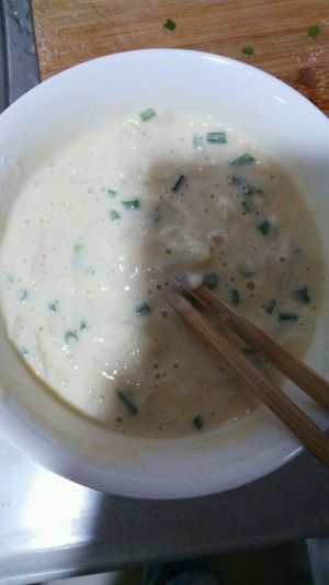 面粉里面加个鸡蛋,加水,盐,葱胡椒粉搅拌成糊状。最后加入挤干水的萝卜丝