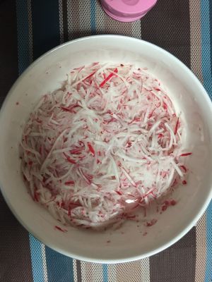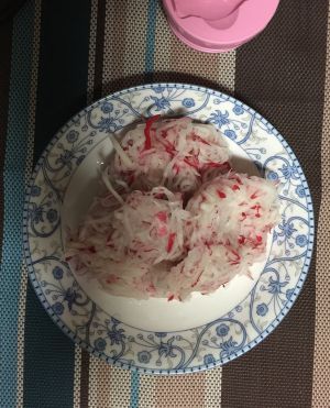 白萝卜去皮用擦丝器擦成丝,加2小勺食盐腌一会