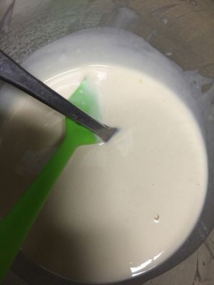 搅拌均匀,一定要均匀哦!不要有颗粒状的面疙瘩。