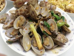 下洋葱辣椒大火翻炒,然后倒入花蛤,生抽,耗油,白糖,鸡精,味精!