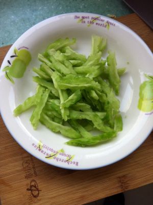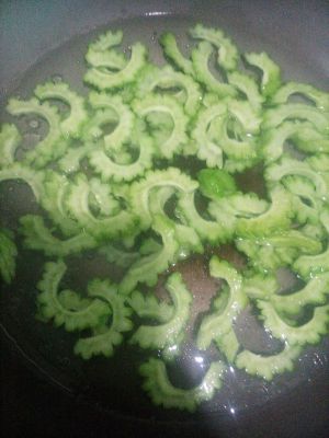 锅中水烧开,加入苦瓜,滴几滴油,捞一下