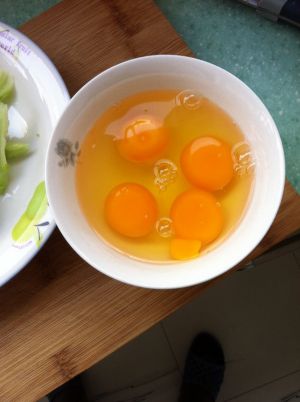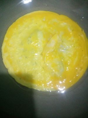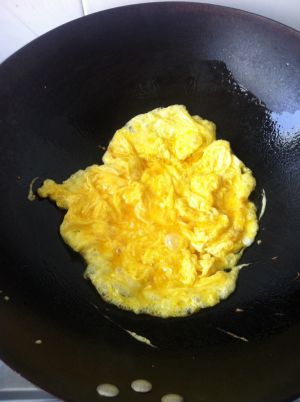 将鸡蛋调匀后,下油,煎制好鸡蛋,煎制时间不宜太长,鸡蛋刚熟就可以了,再将鸡蛋盛起