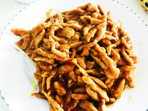 过油后把油倒出,仅用锅底那点油放甜面酱。加半碗水。水开后把肉丝倒进。加点糖,如果觉得色泽不够可以加点老抽着色。收汁。
