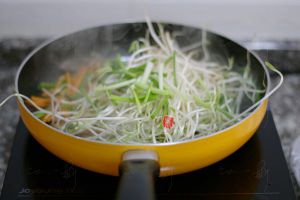 翻炒至豆芽软塌后加入盐调味炒匀即出锅
