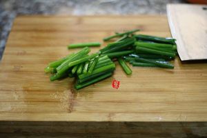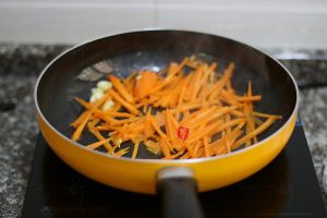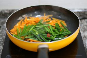 胡萝卜翻炒至断生后加入韭芯翻炒几下