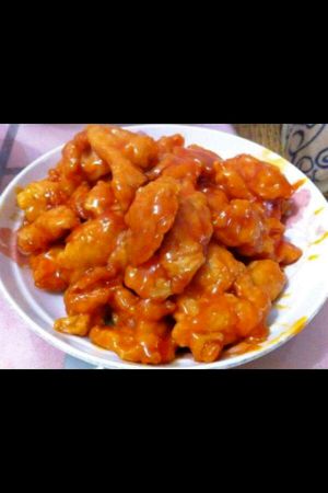 锅里放点油,加水、糖、醋、蕃茄沙司、鸡精烧开,勾芡,倒入炸好的里脊拌匀。