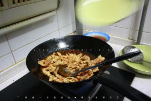 倒入炸好的里脊快速翻拌让肉都裹上酱汁