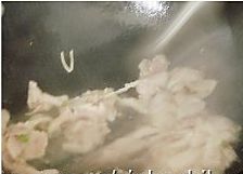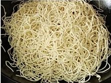 细切面抖开,淋点油,上锅蒸三五分钟。然后取出,抖散。
