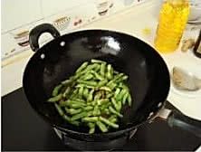 肉丝炒到变色发白放入豆角。放点酱油,可以加点水。炖一会儿把汤盛出来一些备用。豆角生吃有毒一定要做熟。抓过淀粉的肉容易糊锅,注意火候。