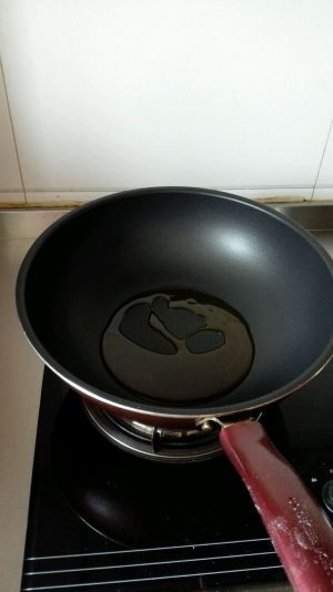 锅里烧油,油温八成热时下五花肉和姜蒜爆香。