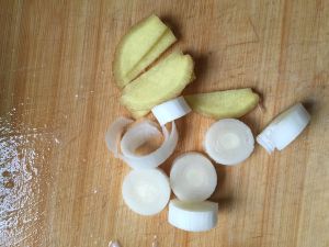 锅里放入排骨,准备好的葱姜,加入适量的清水,滴两滴白醋,大火煮开。