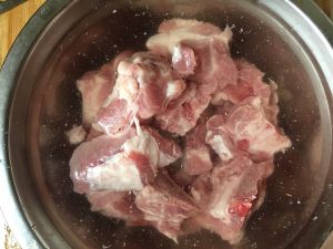 排骨洗净水中浸30分钟,凉水下锅煮3-5分钟,撇去浮沫,捞出再次清洗干净。