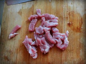 里脊切成食指大小长短粗细,将料酒、盐、加水的淀粉调入里脊肉里拌匀。