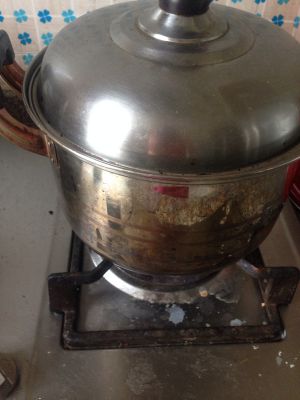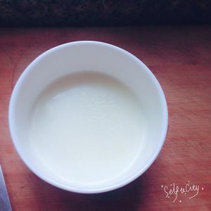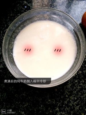 牛奶凉至表面起皮,小心将牛奶倒回锅中,奶皮留在碗底(我一不小心留在碗边,结果蒸完,碗边是黄的)