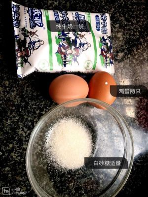 蛋清里加白砂糖,牛奶倒进碗里(不要倒满了,后面还要加蛋清的)