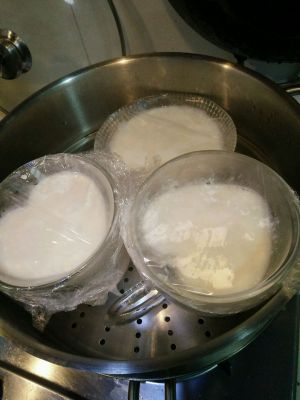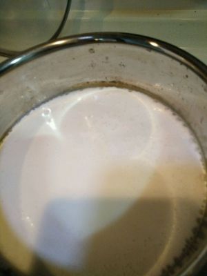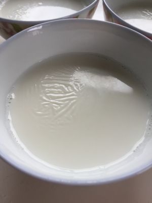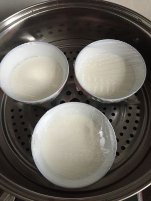 牛奶倒入碗内,蒸锅烧开,再把碗内搅匀一下,蒸15分钟