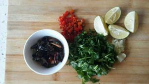 柠檬挤汁和原材料,加盐一起拌匀即可