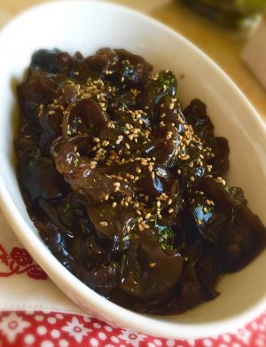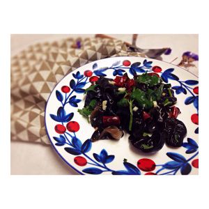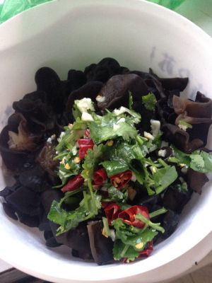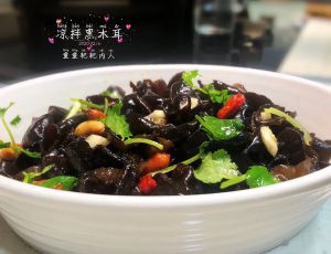 起锅沥干水分(也可直接过下凉凉的净水快速降温)加白糖、生抽,放凉后放米醋,小米椒,枸杞,花生米搅拌均匀入味,装盘后撒上白芝麻和法香碎,香叶,再淋上芝麻油稍稍搅拌下即可.味道媲美KFC的那款啥啥黑木耳哦!哈哈...