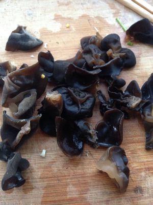 木耳捞出,放入凉水,为了让木耳保持脆,