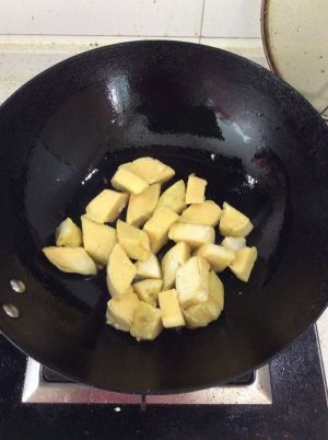 锅热加油,把拌好好的馒头放入锅中翻炒,成金黄色,盛出。