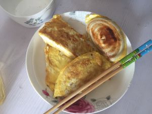 牛奶鸡蛋面粉搅拌散 香煎碾碎
