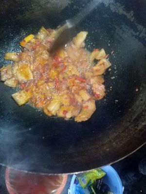 然后加入盐,鸡精,糖,最后加入蒜蓉甜辣酱。