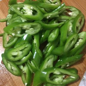 先把青椒,蒜头,红辣椒洗干净 切好备用