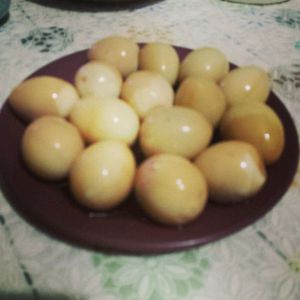 将煮熟的鸡蛋放入冷水中拔凉后,把皮剥光就像这样啊哈哈~