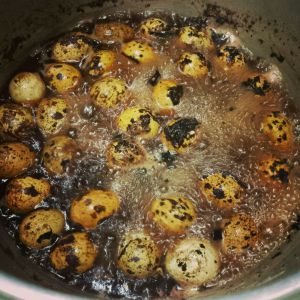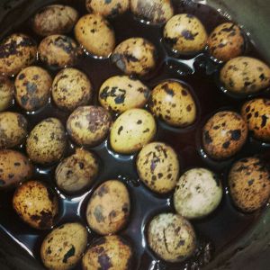 鹌鹑蛋洗干净,烧开水,把蛋,茶叶,盐,五香粉放进,煮5分钟后关火。