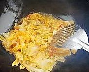 加入辣白菜,炒匀