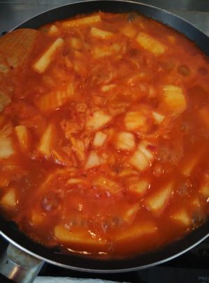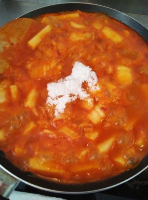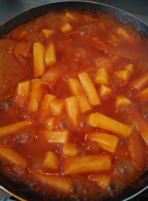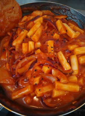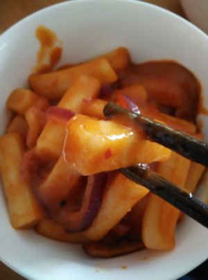 美味的辣白菜炒年糕出炉啦!