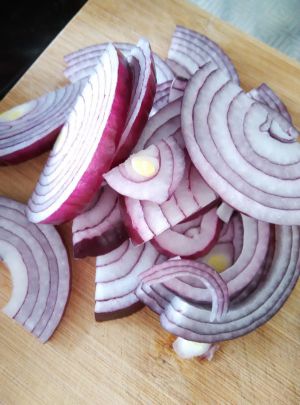 洋葱切成这种粗细的丝,待用。