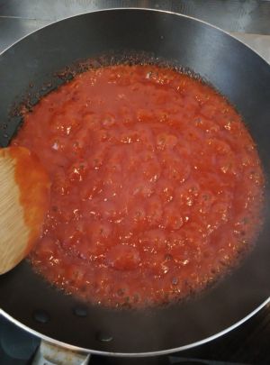起一口平底不粘锅,倒入稀释好的辣酱,再次加入200ml水中小火熬制冒泡。