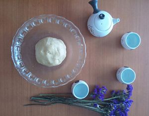 在搓匀的面粉里加入水,揉成面团。不要揉太久,成为稍光滑的面团即可。把面团放进冰箱冷藏松弛15分钟以上。