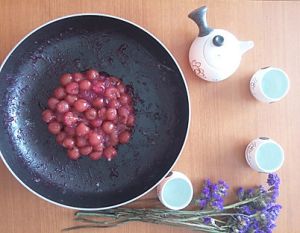 玉米淀粉加入少许清水,兑成水淀粉备用,从冰箱拿出樱桃,倒入小锅,小火慢慢煮至糖融化,糖水渐少;