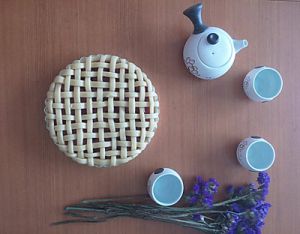 用切出的小长条在派盘表面编制出交叉的网格。用手指按压网格与派盘的交界连接处,使编织网格后多余的派皮脱落,并使网格与底部的派皮粘合起来。